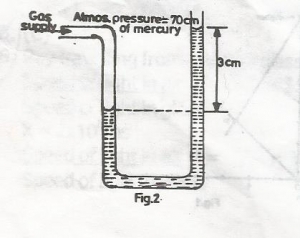 The water manometer above is measuring the pressure of gas supply. if the specific gravity of mercury is 13.6 and the atmospheric pressure is 70cm of mercury what is the total pressure of the gas supply in cm of water