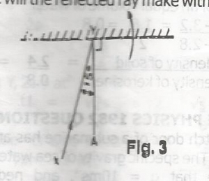 in the image above, an incident ray XY makes an angle of 15\( ^{\circ} \) with a fixed line AY which is normal to surface of a plane mirror if the mirroe is turned as indicated by the arrow through \( 40^{\circ} \) what angle will the reflected ray make with AY