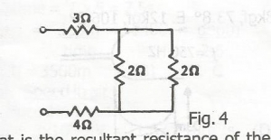 A high-resistance voltmeter reads 3.0V when connected across the terminals of a battery on open circuit and 2.6V when the battery supplies a current of 0.2A through a lamp. The resistance of lamp is