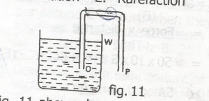 the image above shows an inverted U-tube with the open end, O of one limb below the level, W of water in the tank, in order that water should begin to flow from the tank it is is necessary that