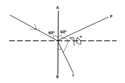 refractive index \(_gn_a\) = \(\frac{1}{_an_g}\) = \(\frac{sin r}{sin i}\) = \(\frac{ sin 30}{ sin 60}\) = \(\frac{1}{0.577}\) = 1.732