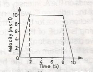 A car moving with a speed of 90kmh\(^{-1}\) was brought uniformly to rest by the application of the brakes in 10s. How far did the car travel after the brakes were applied?