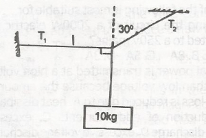 Find the tension T1 in the diagram above if the system is in equilibrium