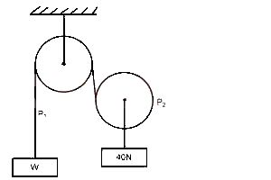 The figure above represents a frictionless pulley system in which a weight W is in equilibrium with a weight of 40N. Find the value of W