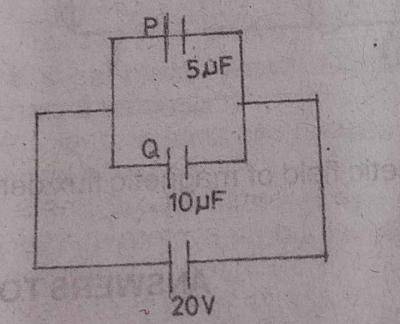 The diagram above shows two capacitors P and Q of capacitance 5μF and 10μF. Find the charges stored in P and Q respectively