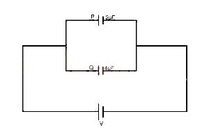 The diagram above shows two capacitors P and Q of capacitance 2μF and 4μF respectively connected to a d.c source. The ratio of energy stored in P to Q is