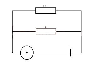 In the circuit diagram above , the ammeter reads a current of 3A when R is 5Ω and 6A when R is 2Ω. Determine the value of x