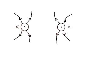 The electric field between two - point charges is shown in the diagram above. What types of charges are at X and Y?