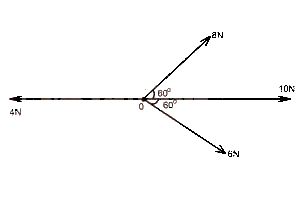 the diagram above shows forces 4N, 6N, 10N and 8N which act at a point O in the directions indicated. the net horizontal force is