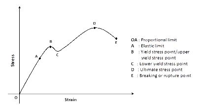 In the stress - strain graph shown above, X represents the breaking point of the wire