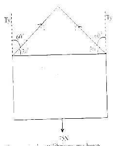 A mirror of weight 75N is hung by a cord from a hook on the wall. If the cord makes an angle of 30o with horizontal, the tension in the cord is