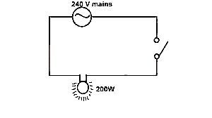 In the diagram above, a 200 W bulb is lighted by a 240 V a.c mains supply. If 1kwh is sold at N40, the cost of keeping the bulb lighted for a day is?