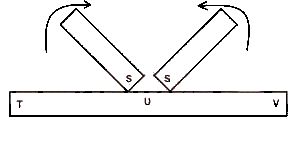 In the diagram above, if the south-poles of two magnets strokes steel bar, the polarities at T and V will respectively be