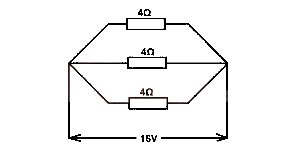 Three 4Ω resistors connected in parallel have a potential difference of 16 V applied across them. What is the total current in the circuit?