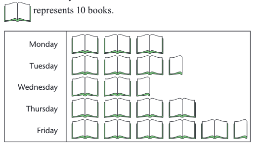 The pictogram below depicts the number of books borrowed, how many books were borrowed on Wednesday?