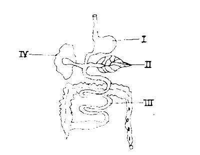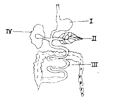 The diagram above illustrates the digestive tract of a farm animal. Digestion of protein starts in the part labelled