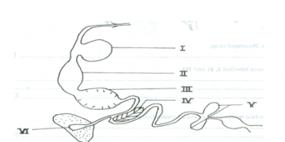Digestion of fats takes place in the part labelled