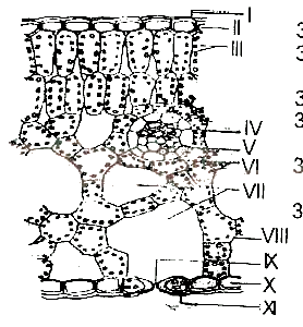 Carbon dioxide enters the leaf through the structure labelled