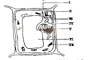 The structure labelled V is the