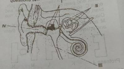 The diagram above is an illustration of some parts of a mammalian ear. Study it and answer this question.