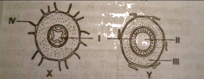 Diagrams X and Y above are illustrations of transverse sections of a part of plants, Study them and answer this question.