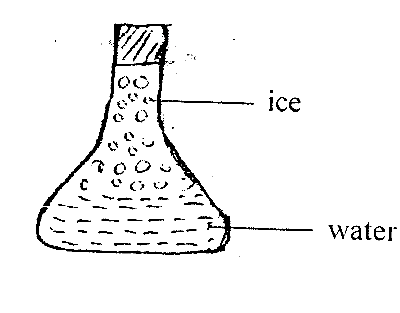 The diagram above illustrates a conical flask containing water and ice. Which of the following is correct about the diagram?