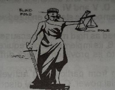 The blindfold on the symbol of the woman in the image indicates that laws must be applied