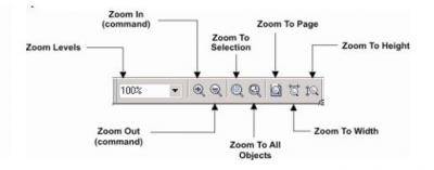 The part of the Corel Draw window labeled II is the ZOOM OUT(command).