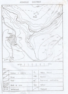 1 centimetres on the map represents 1 kilometre on the ground