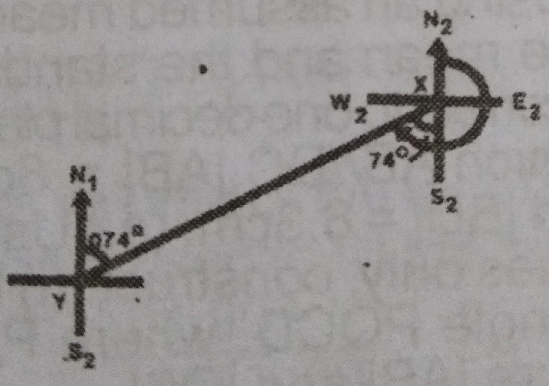 \(\therefore\) Bearing of Y from X = 180° + 74°