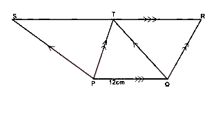 In the diagram, PQRS is a trapezium with PQ||SR. STR is a straight line, PSHQT, PTHQR. If |PQ| = 12cm and the height of the trapezium is 9cm, find its area.