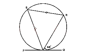 In the diagram above, PQ is the tangent to the circle RST at T.|ST| = ST and ∠RTQ = 68o. Find ∠PTS