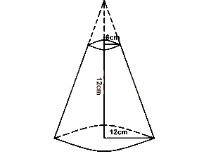 The diagram above shows a cone with the dimensions of its frustrum indicated. Calculate the height of the cone.