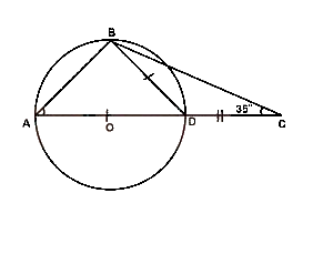 In the diagram above; O is the centre of the circle and |BD| = |DC|. If ∠DCB = 35°, find ∠BAO.