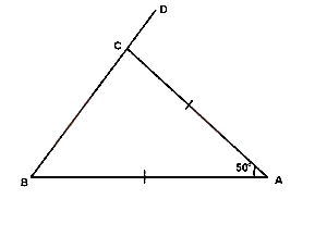 In ΔABC above, BC is produced to D, /AB/ = /AC/ and ∠BAC = 50o. Find ∠ACD