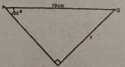 In the diagram above, ∠PRQ = 90°, ∠QPR = 30° and /PQ/ = 10 cm. Find y.