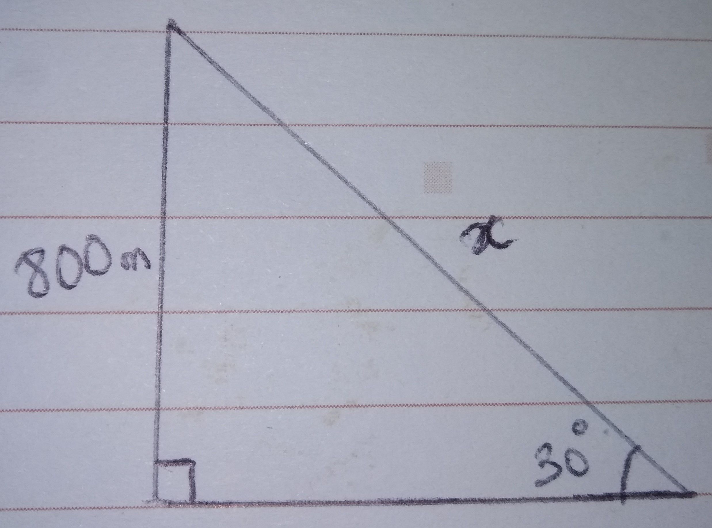 From the diagram, \(\sin 30 = \frac{800}{x}\)