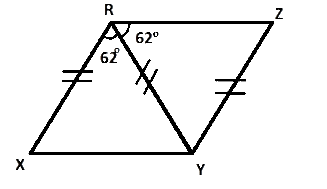 \(\therefore\) < RYZ = 180° - (62° + 62°)