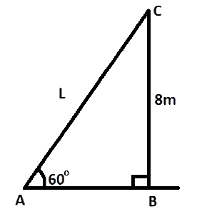 A pole of length L leans against a vertical wall so that it makes an angle of 60o with the horizontal ground. If the top of the pole is 8m above the ground, calculate L.