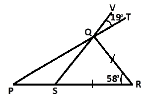 In the diagram, |SR| = |RQ| and ∠PRQ = 58o ∠VQT = 19o, PQT, SQV and PSR are straight lines. Find ∠QPS