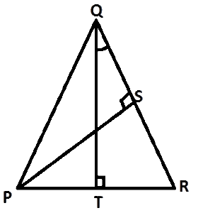 In the diagram, \(\bar{PS}\hspace{1mm} and \hspace{1mm}\bar{QT}\) are two altitudes of ∆PQR. Which of the following is equal to ∠RQT?