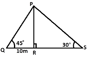 In the diagram, |QR| = 10cm, PR⊥QS, angle PSR = 30° and angle PQR = 45°. Calculate in meters |QS|