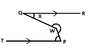 In the diagram, \(QR||TP and W\hat{P}T = 88^{\circ} \). Find the value of x