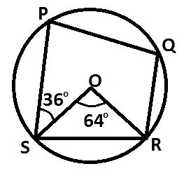 In the diagram O is the center of the circle, ∠SOR = 64° and ∠PSO = 36°. Calculate ∠PQR