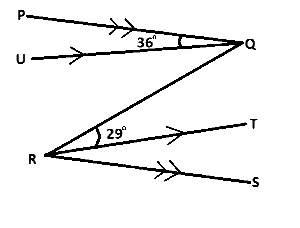 In the diagram above, ∠PQU=36°, ∠QRT = 29°, PQ||RT. Find ∠PQR