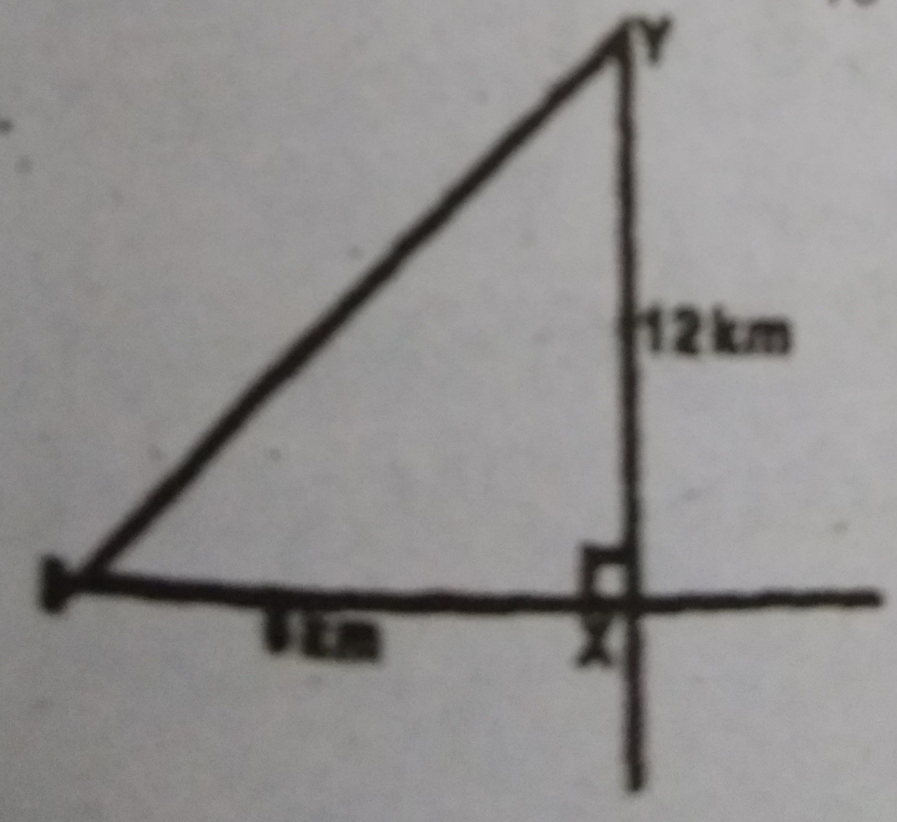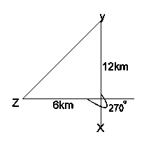 Points X, Y and Z are located in the same horizontal plane such that Y is 12 km north of X and Z is on a bearing of 270° from X. If |XZ| = 6km, calculate, correct to one decimal place, lYZl