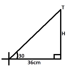 \(Tan 30^{\circ} = \frac{H}{36} \Rightarrow H = 36 \times tan30^{\circ}\\