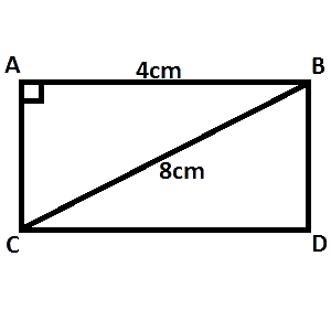 Find the area of a rectangle of length 4cm and whose diagonal is 8cm, (Leave your answer in surd form)