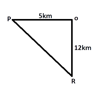 |PR|=\sqrt{25+144}=\sqrt{169}=13km\)