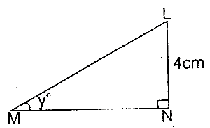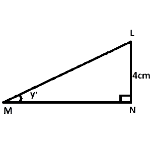 IN the diagram, |LN| = 4cm, LNM = 90o and tan y = 2/3. What is the area of the ∆LMN?